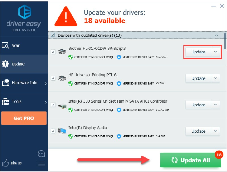 Driver Easy can update the Brother HL 3170cdw drivers automatically if you lack the time, patience, or computer abilities to do so manually.